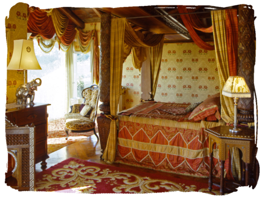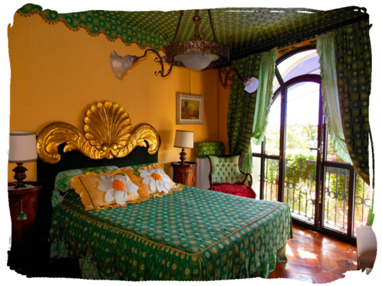 Decorations and tasteful furnishings Liberty style dominate this suite where yellow and green colors are predominant. Worthy of note is the ceiling where is painted a large green lawn dotted with yellow daisies.